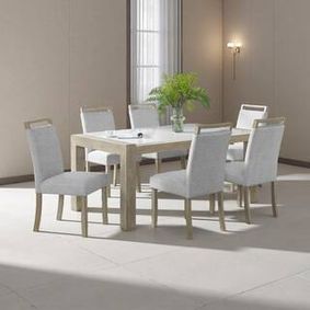 7 Piece Dining Set with Faux Marble Table Top and Upholstered Chairs |