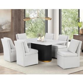 The Kellet 7 pc. Rectangular Dining Set offers a beautiful white marble veneer top with a modern ebony base. The chairs have chic wood construction with a curved back for comfort & support along with floor glides to help protect floors from scratches.