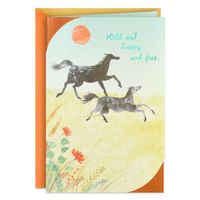 Celebrate someone special with this Hallmark birthday card featuring a design of wild horses galloping through a field paired with a coordinating message.