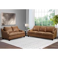 $3,699.99 Prospera Home Tampa Top Grain Leather Sofa and Loveseat · Top grain leather on all seating areas, arms rests and the front rail · Solid wood legs, kiln-dried solid wood frame · Pocket coil springs for support · Removable seat cushions with memory foam and down feathers ·