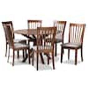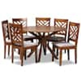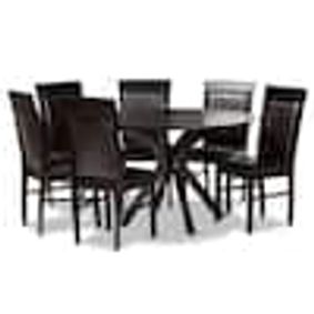 This 7-piece dining set brings a classic look to your dining room or eat-in kitchen. It accommodates six people, making it just right for family dinners or hosting friends. The round table is crafted from a combination of solid and engineered ...
