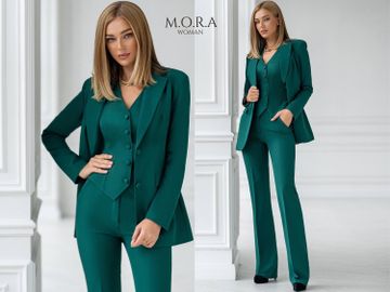 A well-fitting suit should have a tailored silhouette that flatters your body shape. The women's dark green blazer or suit jacket should sit nicely on your shoulders and button without pulling or being too loose. The suit pants, on the other hand, should fit snugly at the waist while allowing for easy movement.
