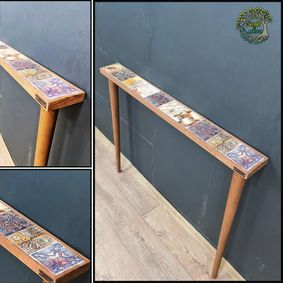 Rustic Skinny Console Table - This retro-style table adds functionality to your space without taking up too much room. Perfect behind the sofa, in an entrance, foyer or hallway or even as a pub table against the wall.