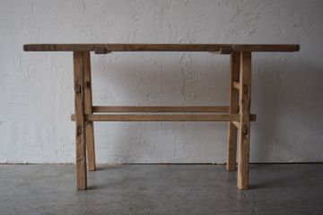Unleash your daring side with our Wall Console Table Extra Long. Measuring an impressive 125"W x 14"D x 34"H, this industrial masterpiece combines antique elm planks with sturdy cast iron to make a bold statement in any setting. Dare to be different and make a powerful impact with this exceptional design, reminiscent of old factories reborn into modern, chic lofts. Elevate your space and immerse yourself in the realm of industrial allure with our beige Wall Console Table.
