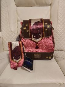 Calling all Gryffindors! This exclusive mini backpack is ready to help you show off your house! · The top flap of this bag features the Gryffindor crest against a satin background, surrounded by embroidered stars and snakeskin faux leather. A real tassel dangles from the bottom of the Gryffindor banner. The rest of the bag is covered in red velvet for an elevated feel. · This bag has your back during any magical adventure you set out on! · Features A Loungefly exclusive! Velvet mini backpack with faux leather (polyurethane) trim Adjustable shoulder straps Applique, embroidered, r