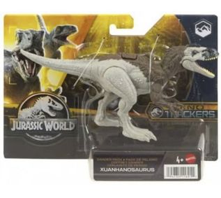 These Gigantic Tracker figures inspired by the Jurassic World franchise have two tail-activated rampage attack motions! Move the tail up and down to activate the main attack; move it side to side to activate a secondary attack! Each figure is approximately 13 inches long with authentic sculpting, deco and texture for d