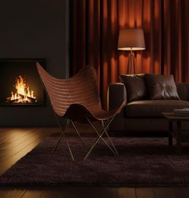 Channeling Brazilian mid-century design, Trava invests natural materials with rich detailing and a dynamic silhouette. Solid oak crafts the architectural frame with bold shapes and striking angles. Held in place with pass-through dowels, the sling seat and back support semi-attached cushions that are understuffed for a soft, secure and relaxing sit. Leather upholstery indulges with velvety texture, graceful drape and a burnished appearance that will only get better with time. FSCยฎ-certified solid oak from responsibly managed forests. Warm brown barley finish highlights wood grain. Kiln-dried