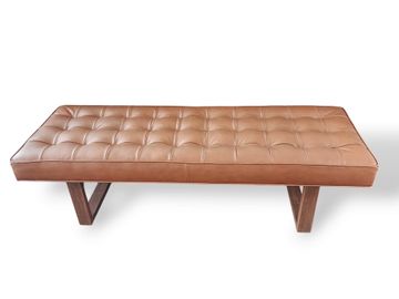 This double opening leather storage ottoman is fully covered in beautifully soft leather. Gently tufted and with matching espresso legs, you will proudly display your ottoman in a prominent high-traffic area.