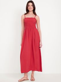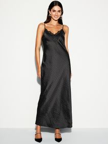 The maxi is the dress that goes everywhere. You can just as easily picture it for a casual dinner with a pair of sandals or dressed up with heels for a wedding. Cotton can give the dress a casual feel, or satin can make for something more formal.