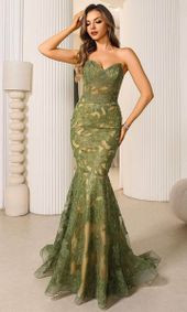 You’ll see lots of satin and jersey gowns with simple shapes that still feel fancy. Popular shades include emerald, lime, sage, and olive. Many dresses have strapless tops, off-shoulder sleeves, or small cutouts that add a fun touch without ...