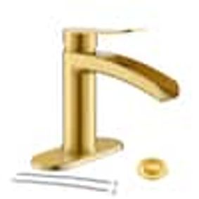 Hoimpro Brushed Gold Waterfall Spout Single Hole Bathroom Faucet, Stainless Steel Single Lever Bathroom Vanity Sink Faucet with Drain, cUPC Hose and Deck Plate - Amazon.com