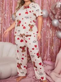 Women’s Short Sleeve Pajama Set in Teddy Bear