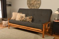 The Futon and Mattress is a classic hardwood frame with mission-style arms. This unique and versatile queen-size futon sofa easily converts to a bed.