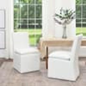 The seat and back are packed with a foam interior for lots of cushioning and wrapped in a neutral-toned fabric that effortlessly balances your space. I have been looking for weeks for dining chairs to go with a beautiful new glass white table that hasn’t arrived yet—purchased 4 chairs and 2 captain chairs.