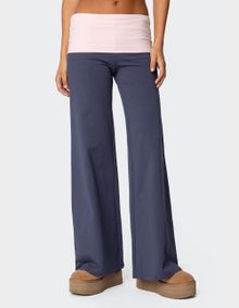 A pair of grey wide-leg pants with a fold-over waistband, made from 95% cotton and 5% spandex. ... A pair of loose-fit, gunmetal cotton cargo pants with multiple pockets and a 20" leg opening. ... A pair of black fleece-lined sweatpants featuring cargo pockets, elastic waistband, and a comfortable ...