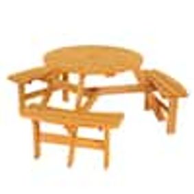With a 2" umbrella hole, 500 lb bench capacity, and weather-resistant wood, it’s built for years of outdoor enjoyment. Key Features: ✔ 70" Round Tabletop – Ample space for 8 adults, natural wood grain, smooth, burr-free edges ✔ 4 Built-in Benches – 500 lb capacity each, integrated for stability, no assembly required ✔ Umbrella Hole – 2" diameter, fits standard patio umbrellas (not included) ✔ Weather-Resistant Wood – Treated to resist rot, UV damage, and moisture ✔ Rustic Charm –