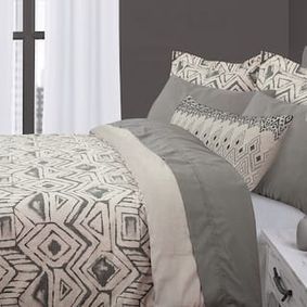 100% Cotton 170TC comforter set with nice neutral colors that will suit to any bedroom. Set includes 1 comforter, 2 shams, and 2 deco cushions.