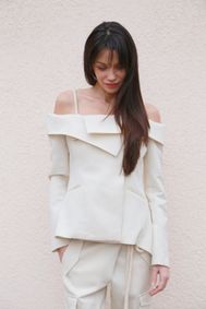 The iconic oversize white Blaar women's blazer is one of your favorite models. It was made of a combination of linen and cotton, thanks to which it is perfect for the spring-summer season, ensuring extraordinary wearing comfort at higher temperatures. It is characterized by a timeless appearance, classic construction and attention to detail. It will create a perfect total-look with almost any stylization. It looks great in combination with dedicated Blaar pants. MADE IN POLAND Composition: 70% linen, 30% cotton