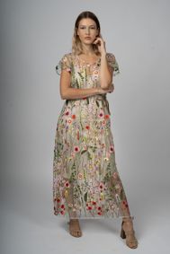 In a structured shirt dress silhouette crafted in taffeta, the Teri Jon 229023 dress makes a bold statement. The ยพ-length sleeves and blouse bodice with a collar make this gown a modest option for a formal wedding. The full skirt lends undeniable drama and sophistication. Eyelet sleeves and a removable sash belt add the perfect finishing touches, creating a one-of-a-kind mother of the groom look. ... For the mom who loves color and print, the LulaKate Beckett Bodice with Brunch Skirt is a perfect choice for an outdoor wedding in spring or summer.
