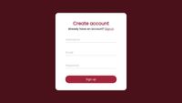 If disabled, use the "Run" button to update. If enabled, your code will be formatted when you actively save your Pen. Note: your code becomes un-folded during formatting. ... Visit your global Editor Settings. ... <div class="container"> <div class="card"> <div class="card_title"> <h1>Create Account</h1> <span>Already have an account? <a href="login">Sign In</a></span> </div> <div class="form"> <form action="/register" method="post"> <input type="text" name="username" id="username" placeholder="UserName" /> <input type="email" name="email" placeholder="Email" id="email" /> <input type="password" name="password" placeholder="Password" id="password" /> <button>Sign Up</button> </form> </div> <div class="card_terms"> <input type="checkbox" name="" id="terms"> <span>I have read and agree to the <a href="">Terms of Service</a></span> </div> </div> </div>