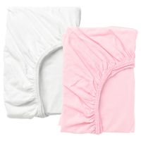 LEN Crib fitted sheet - white/pink 28x52 ". Do you think it's a pain to make the bed? Then try a fitted sheet next time. Easy to pull over the mattress and secure for your child since the elastic edging keeps the sheet in place. Recommended for all ages.