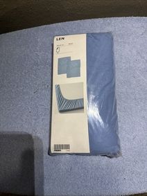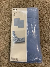 LEN Crib fitted sheet - light blue 28x52 ". Do you think it's a pain to make the bed? Then try a fitted sheet next time. Easy to pull over the mattress and secure for your child since the elastic edging keeps the sheet in place. Fits all our cribs. Recommended for all ages.