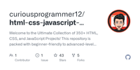 GitHub - curiousprogrammer12/html-css-javascript-projects-with-source-code: Welcome to the Ultimate Collection of 350+ HTML, CSS, and JavaScript Projects! This repository is packed with beginner-friendly to advanced-level projects, helping you master front-end web development with hands-on coding. · GitHub