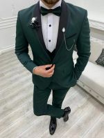 A dark green suit can be a stylish choice for a wedding. Its distinctive color offers a refreshing alternative to the more traditional black or navy suit choices commonly seen at these events. Dark green suits are an excellent option for various wedding personnel, including groomsmen, wedding party members, guests, and the groom or marrier themselves.