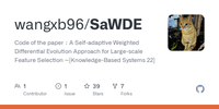 GitHub - wangxb96/SaWDE: Code of the paper:A Self-adaptive Weighted Differential Evolution Approach for Large-scale Feature Selection --[Knowledge-Based Systems 22]