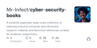 GitHub - Mr-Infect/cyber-security-books: A carefully organized, large-scale collection of cybersecurity and computer security books, research material, and technical references curated for students, researchers, and professionals. This repository serves as a central knowledge vault containing high-quality PDFs across core and advanced security domains — designed for structured learning,