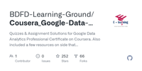 GitHub - BDFD-Learning-Ground/Cousera_Google-Data-Analytics-Professional-Certificate: Quizzes & Assignment Solutions for Google Data Analytics Professional Certificate on Coursera. Also included a few resources on side that I found helpful.