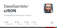 GitHub - DaveGamble/cJSON: Ultralightweight JSON parser in ANSI C · GitHub
