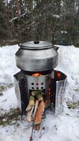 great minds think alike. I have the same ikea bin turned into almost the same stove, i used bike spokes instead of a ruler for my pot rack though. More on reddit.com