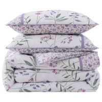 Lilac Comforter | Cynthia Lilac Floral 100% Cotton Floral Bedding Comforter Set
