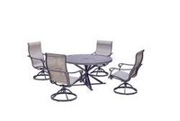 The Dutton five-piece dining collection has four swivel rockers and a rectangular Resysta® slat top dining table. With the Resysta® materials on the table and chair arms, you are able to enjoy the beautiful wood-like look for years to come without worry of fading, splitting, and other wood product maintenance. Add both style and functionality to your outdoor space with this five-piece set!