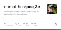 GitHub - ehmatthes/pcc_3e: Online resources for Python Crash Course, 3rd edition, from No Starch Press. · GitHub