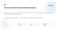 July 23, 2024 - This course is dedicated to core ... or Data Science. ... The modulo operator, often denoted as “%”, is a mathematical operation that finds the remainder when one number is divided by another....