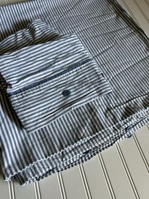 BERGPALM Duvet cover and pillowcase(s) - blue/striped Full/Queen (Double/Queen). Made in 100% cotton - a natural and durable material that becomes softer with every wash. Yarn-dyed; the yarn is dyed before weaving; gives the bedlinens a soft feel. Decorative buttons keep the duvet in place.