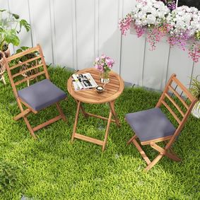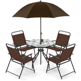 Save up to 33% Save % 6 Piece Outdoor Patio Garden Bistro Set with Round Table, Folding Chairs and Umbrella - Available in 2 Colours ... Only 2 left! Description Items Included 4 Folding Chairs Round Table Umbrella This 6 piece bistro set will perfectly complement your garden, patio or balcony...