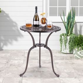 Ranging in style from traditional to contemporary, our round outdoor dining sets put the finishing touch on any deck or porch. A three-piece table and chairs with curving metal details offers chic, bistro seating or bar height dining for two. Need something a little more spacious?