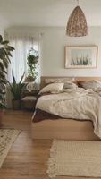 🌿 ⥉ ⥉ ⥉ Dreaming of a serene bedroom makeover? 🌿 Check out this modern boho styled bedroom featuring a neutral palette with a touch of sage green. Perfect for creating a calm and inviting retreat! ⥉ ⥉ ⥉ ✨Follow me for your daily dose of stylish decor inspo!