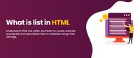 HTML lists are group or collection of items. These items can be both organized and unorganized depending on the requirement. They help in organizing, structuring, and presenting information to make it more user-friendly, readable, and accessible.