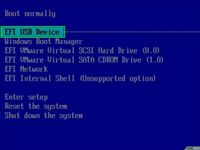 Using the computer where Windows is to be installed, UEFI boot from the flash drive. You should get a window similar to the one shown below. You can ignore the contents of this window.