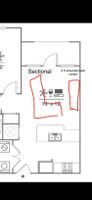 We’d love to fit in a few essentials: a sofa (we’re considering a sectional, but we’re open to other options), a coffee table, a TV stand, and, of course, the TV. We want to make the space as functional and comfortable as possible, but we’re also hoping to make it feel a bit more spacious.