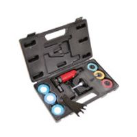 With 10 mounted stones. Perfect for porting engines, dressing welds and castings and many more intricate grinding jobs. Includes spanners and collets for 1/4" and 1/8" shanks. No load speed 25,000 rpm. Air consumption 4 cfm. Maximum air pressure 90 psi. Accepts 1/4" BSP air inlet connector. Overall length 160mm. In moulded case. Operating and maintenance instructions included. Weight 986 gms. 90 DEGREE AIR DIE GRINDER #AIRDIE90