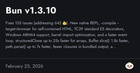 1 week ago - Failed attempts include a <failure> element, followed by the final passing <testcase>. This gives CI systems and flaky test detection tools per-attempt timing and result data using standard JUnit XML. Thanks to @alii for the contribution! Bun.generateHeapSnapshot("v8") now accepts an optional second argument "arraybuffer" to return the heap snapshot as an ArrayBuffer instead of a string. This avoids the overhead of creating a JavaScript string for large snapshots and prevents potential crashes when heap snapshots approach the max uint32 string length.