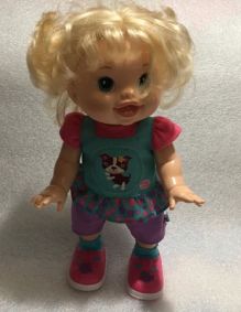 Granddaughter loves feeding her baby alive noodles. However they dry up if she leaves them out. Nice to be able to buy... see all reviews ... She is absolutely adorable! She is a Christmas gift and my great granddaughter will love her! Her skin is not as soft ... see all reviews ... My niece was overjoyed. Both doll and accessories are of good workmanship and made to withstand good quality playtime.
