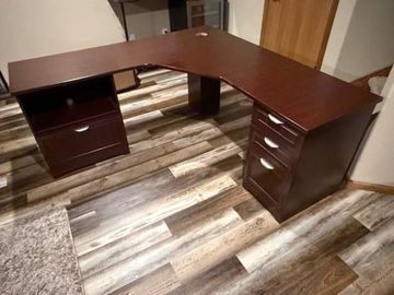DESK WITH HUTCH - Very functional -by Palliser - $140 · Aldergrove/LANGLEY TWP · GLASS TOP TABLE METAL with 2 CHAIRS · $125 · Aldergrove/LANGLEY TWP · Upholstery LivingRoom Chair and Maching Footstool · $295 · LangleyCity · Furniture —Wooden Filing Cabinet-- $125-MOVING ·