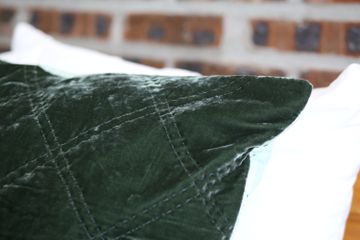 Rich forest green velvet quilt brings an effortlessly glam look to the bedroom. Detailed stitching adds a soft, channeled texture, while cotton velvet creates warmth and coziness.