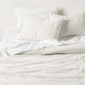 Irresistibly soft and cozy, this quilt brings a warm, lived-in charm to any room. Our stonewashed cotton velvet has a substantial hand and easy drape, accentuated by channel quilting for a simple yet modern look. Durable and easy to care for, this quilt acts as a lightweight standalone piece for warmer months but transforms into a versatile layering element during cooler months. Its availability in a wide range of neutrals and jewel tones means there's a sumptuous quilt for your style, whatever that may be.